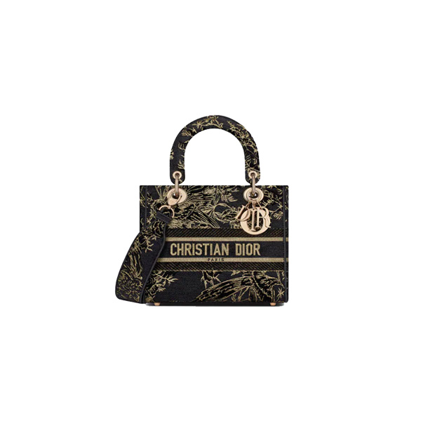 Dior MEDIUM LADY D-LITE BAG Black Multicolor Dior Jardin d’Hiver Embroidered Cotton with Velvet and Metallic Thread