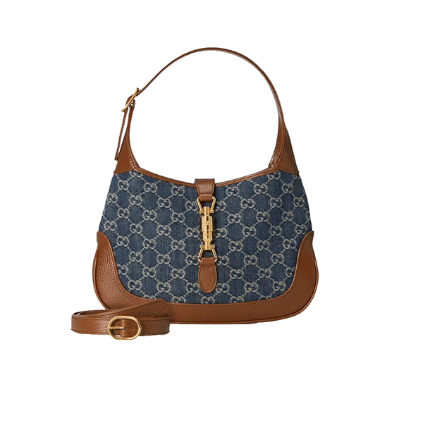 Gucci Jackie 1961 Small Shoulder Bag In Blue and Ivory GG Denim